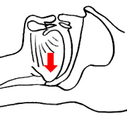 いびきの原因は肥満、アルコール、薬物などによって空気の通り道である「気道」が緩んだり圧迫されて狭くなり振動音が起こります。図は気道が圧迫されている状態。