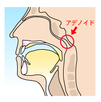 睡眠中に咽頭や舌の筋肉の緊張が低下したときや、アデノイドなどの鼻疾患、咽頭部の障害によって気道が閉塞するときにおこります。いずれも睡眠中は空気の通り道(気道)がふさがれ狭くなり、そこに空気が通ると粘膜が振動しいびきの発生となります。 |