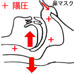 適応 : 重度までの睡眠時無呼吸症候群 睡眠時無呼吸症候群に用いる装置で頭部固定のゴムマスクを鼻に装着し、ポータブルのコンプレッサーを使用して加圧した空気を人工呼吸器のように鼻から気道に送り込みます。効果が高く睡眠時無呼吸症候群の治療として用いられています。 気道内を陽圧にさせ、空気を人工的に送り込むことが可能です。舌の落ち込みによる閉塞も防止することが出来ます。症状は翌日より大幅に改善されるため、熟睡出来るようになります。 また、無呼吸症は睡眠中酸欠状態になりやすいため循環系合併症の心拍数増加、高血圧、不整脈といった症状が現れます。装置を使用することにより空気を十分取り入れられ、体内の酸素量も増えることになります。よってこれら合併症の抑制にも有効な方法でしょう。
