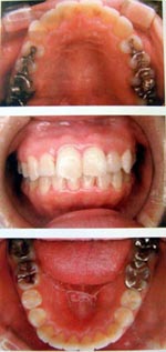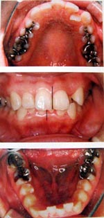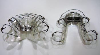 顎が小さく、口の中の空間が十分にない場合、いびきや睡眠時無呼吸症候群の原因になることがあります。 上記のような例で、症状が出ている場合、抜歯をせず口の中の空間を広くする装置を使用することで、症状をなくすことができます。 =注意= 顎が小さいまたは口の中の空間が狭い場合には改善が期待できますが、狭くない場合や肥満の場合は効果は期待できません。 期間は個人差があり、1年〜3年です。 矯正終了まで、いびき、無呼吸症候群は改善しません。 |